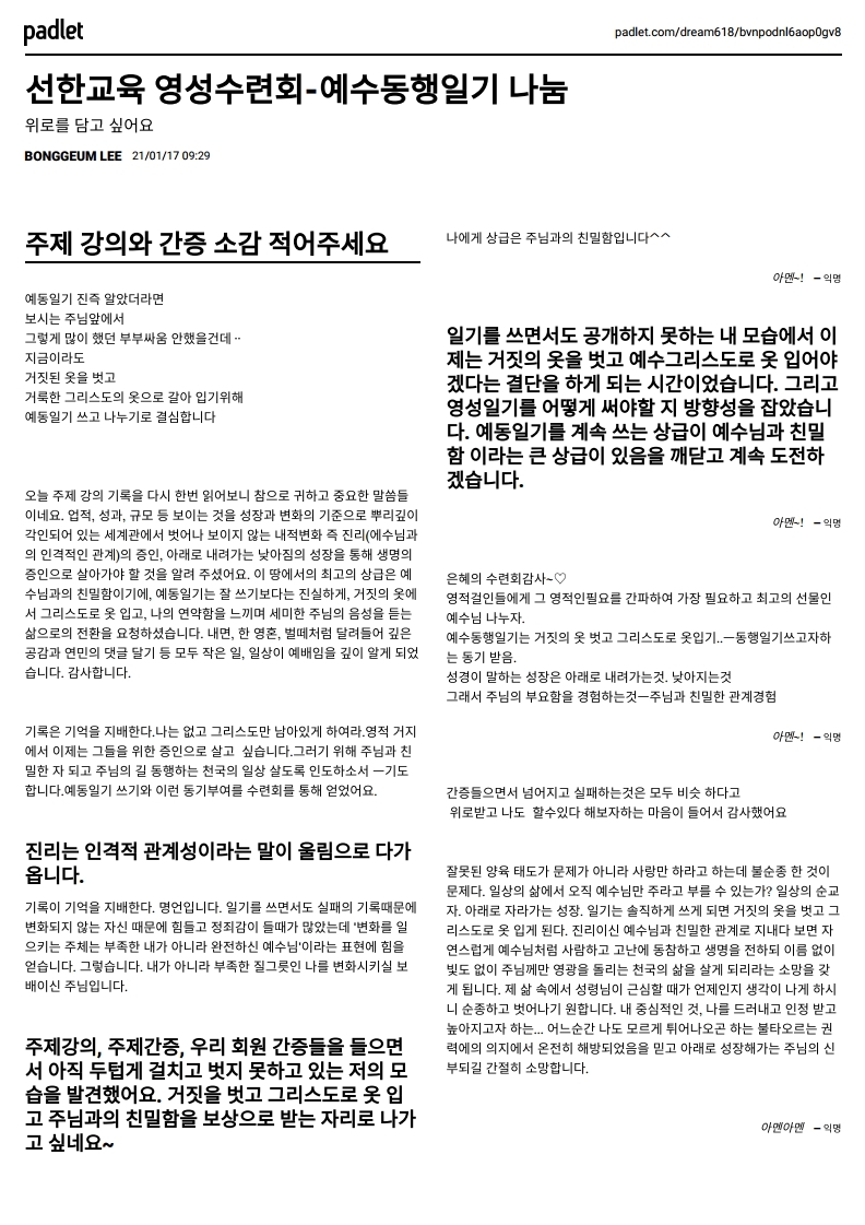 | - | 2021년 1월 18일 겨울 영성수련회(예수동행 그 귀.. | 02. 15 |